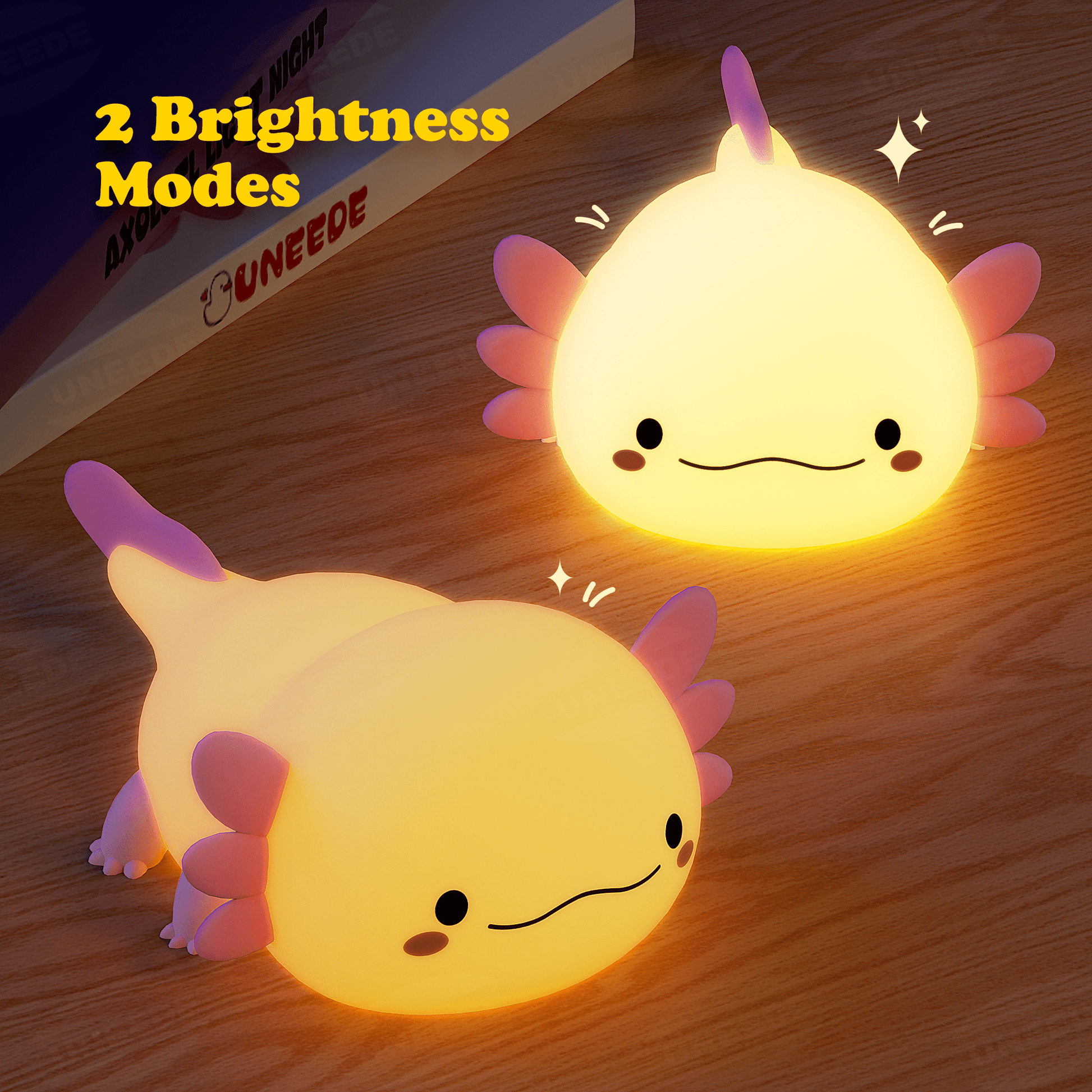 Switch between three brightness levels with just a gentle tap or a squeeze. This makes the Axolotl Glow Night Light incredibly user-friendly, allowing your kids to control their own lighting with ease and bringing a sense of independence at bedtime.