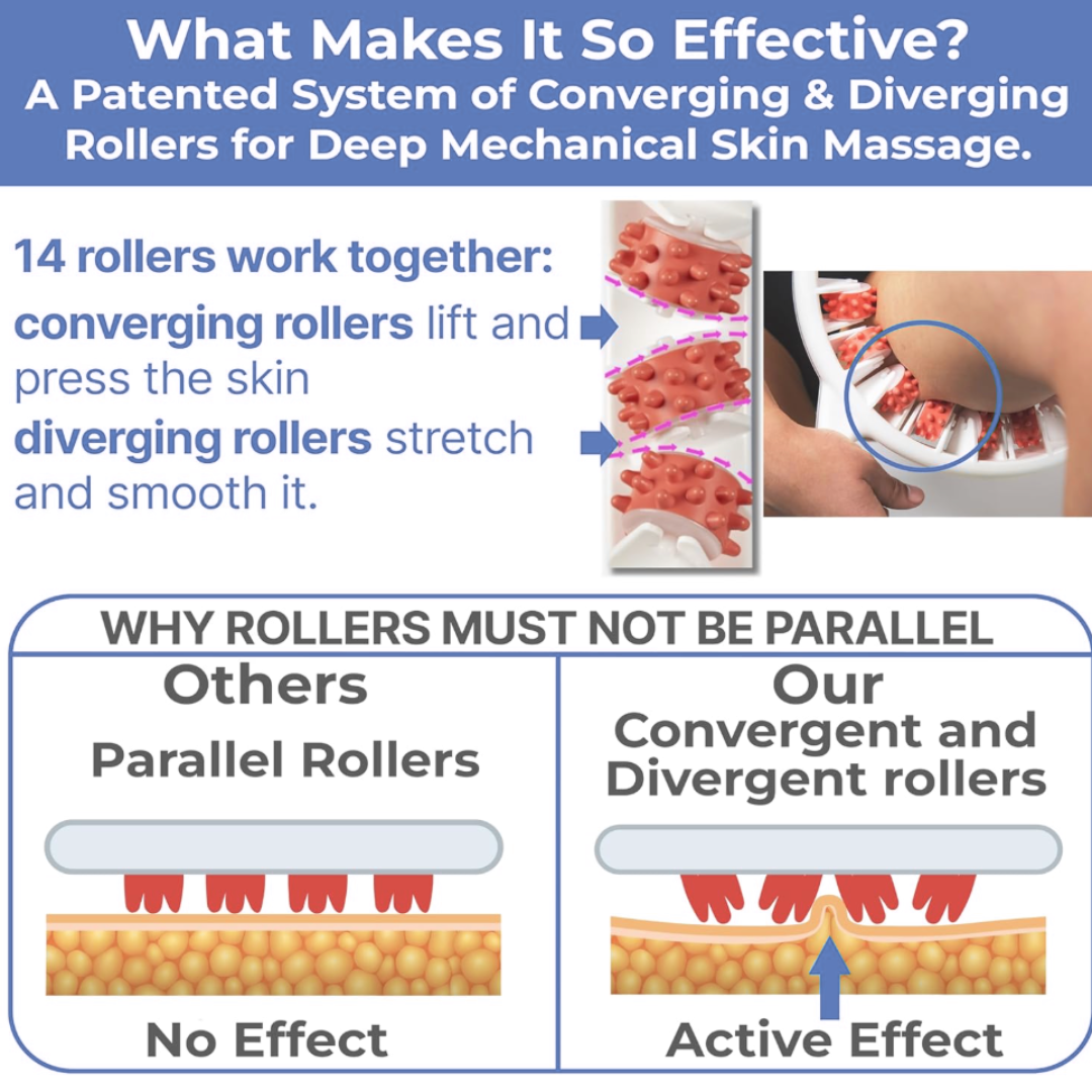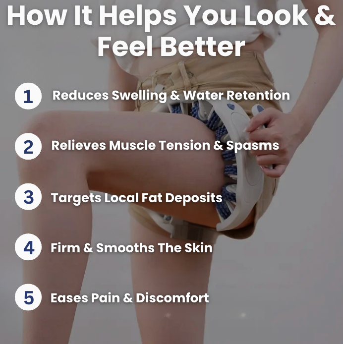 Apply gentle but firm pressure while gliding the massager over target areas. The patented grip design helps break up trapped fat deposits beneath the skin.
