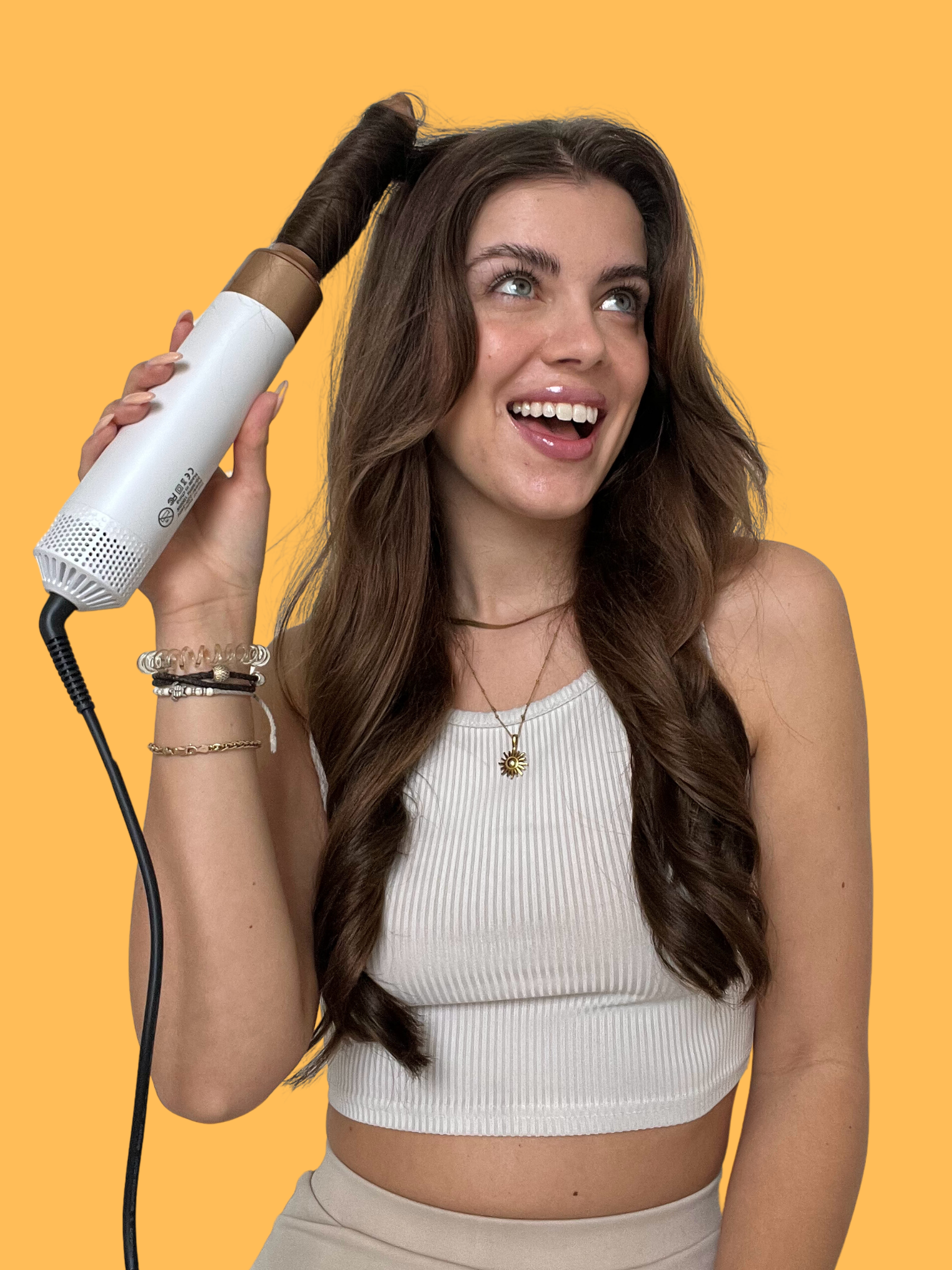 The StylingZauber 5-in-1 combines blow drying, straightening, curling, and volumizing in one sleek, compact tool. Get salon-worthy results – fast, gentle, and all from the comfort of your home.