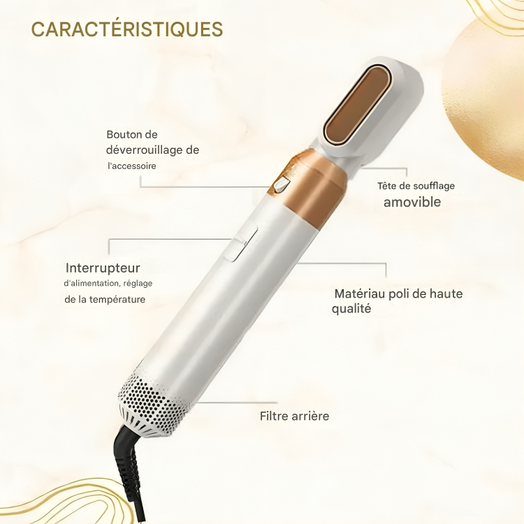 5 Attachments: Dryer, Straightener, Curler, Hot Air Brush & Styling Nozzle