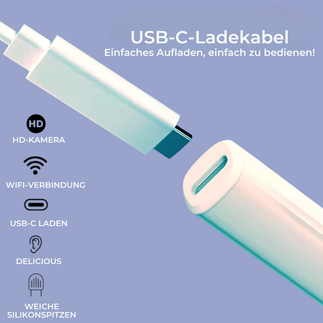 With its integrated HD camera, you can safely and accurately clean your ears while watching everything live on your screen. Comfortable, precise, and suitable for the whole family.