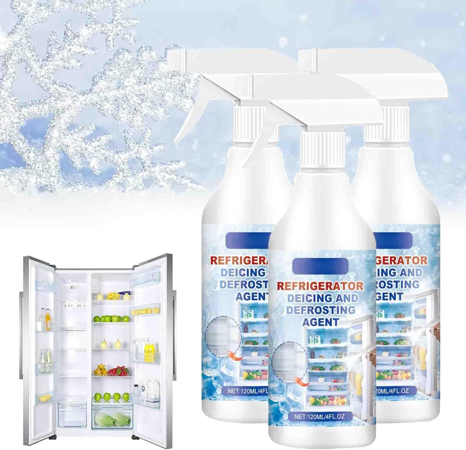 How to Use: Disconnect power, spray evenly on ice, let sit 5–10 minutes, wipe clean