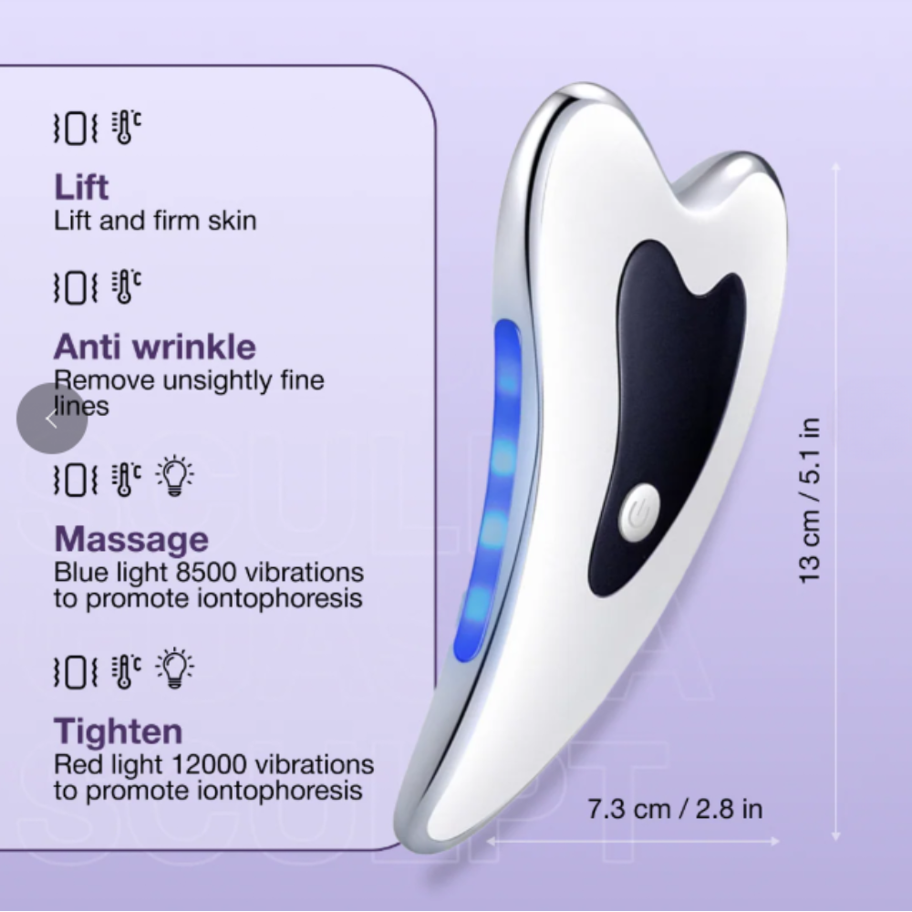 ElGuaSha™ kombinerar fyra funktioner i ett och samma verktyg: mikrovibration, massage, uppstramning och formning.
