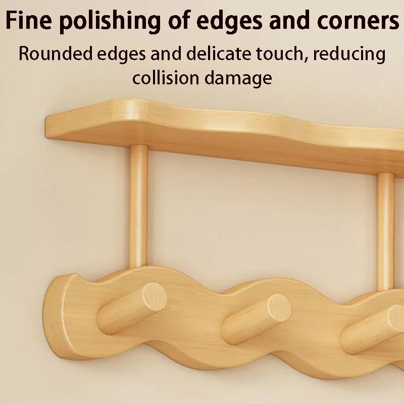 HomeHaven Wall Organizer – Wooden Shelf with Hanging Hooks