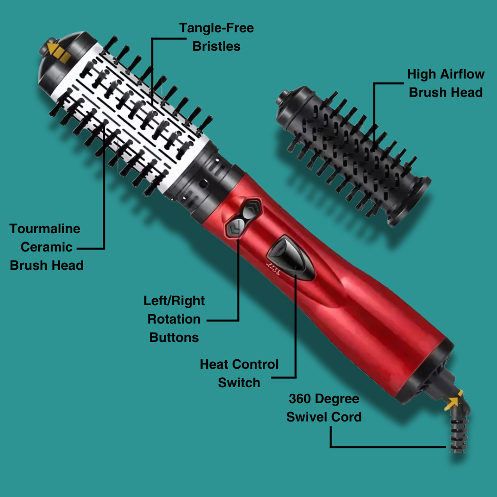 The brush heads can easily be wiped down with a damp cloth to remove any hair or product buildup.