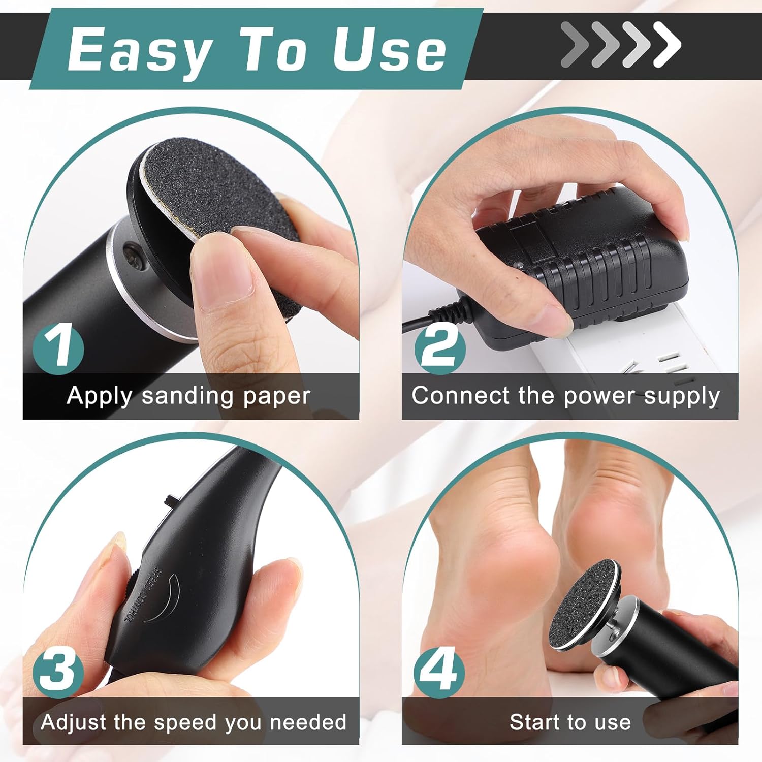 Gone are the expensive spa appointments and long waits. The SoleSmooth rotates 360° to gently remove dead skin and calluses without damaging your healthy skin. Its speed-adjustable motor lets you customize your treatment for gentle smoothing or more intense callus removal. The included 60 replaceable sandpaper discs make it easy for the whole family to enjoy smooth, pampered feet—safe, fast, and convenient.