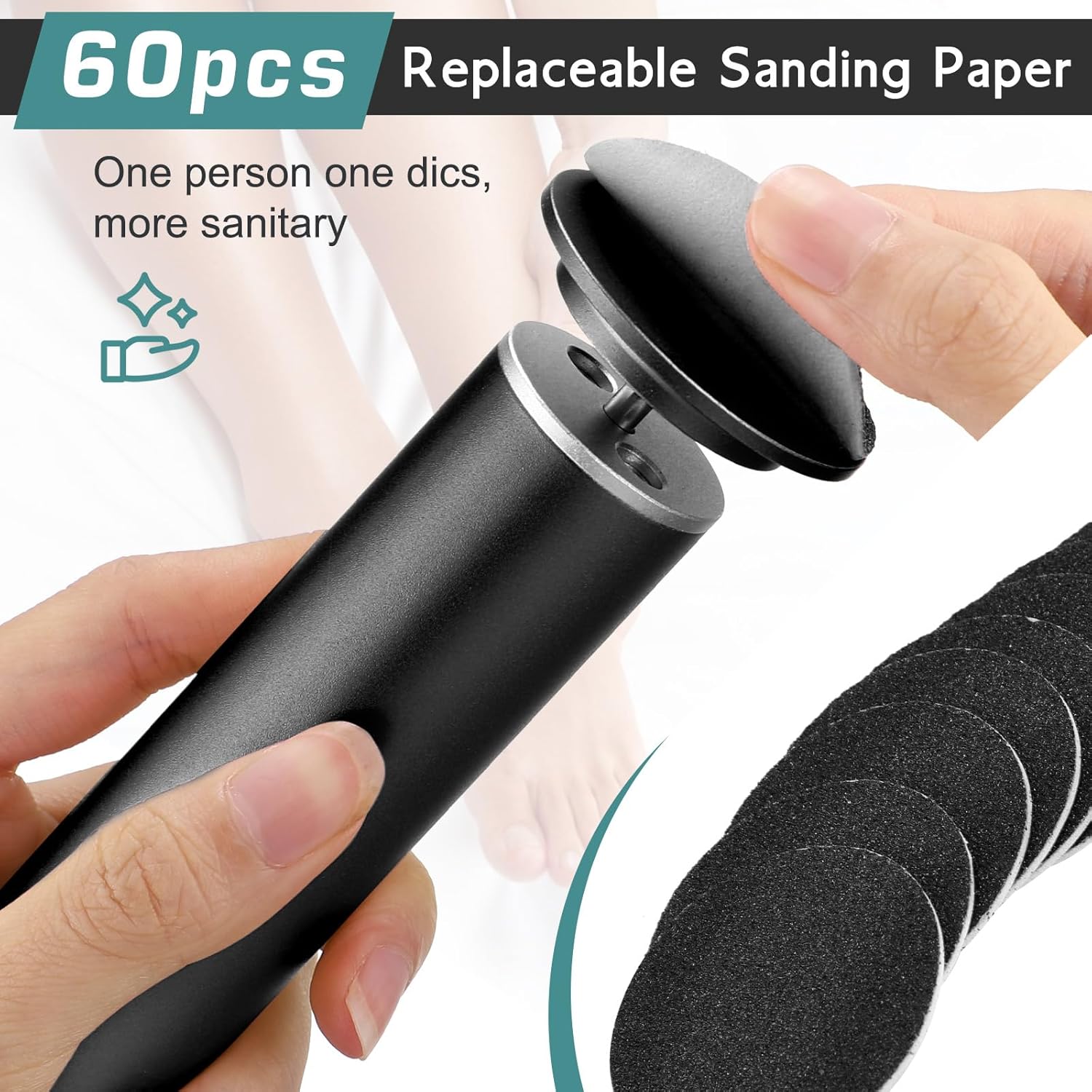 ✓ 60 self-adhesive replacement sandpaper discs included for long-term use