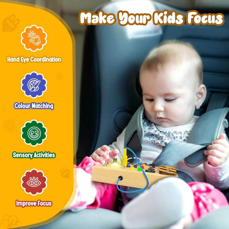 Sooner or later, your child will start using home appliances. This toy teaches them all the different ways they can be switched on and off. There are 8 different switches, and your child needs to figure them out to turn on this board’s colorful lights.